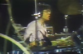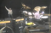 この角度の画は美味しいです(注5) ジェフのタムの打面が微妙にうねっているのが判ります。そして大きい方のフロアタムが自分の腰位置より後ろに配置されてます。これで本当に叩けるんのだろうか? ペイチがジェフ側をチラリと見てたりして ...。