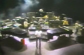 しかし、こうして俯瞰で見るとこの機材群は圧巻ですね(注2)。なんてったってグランドピアノが2セットも設置されているわけで、これって自前? スティーブ・ポーカロの背景にはお馴染みのシンセのパッチが施されたラック棚が盛りだくさん。スティーブ・ルカサーのコメントの通りに全員で円陣を組んでいるのがはっきりと分かります。そして僅かにですがスモークが焚かれているようです。 |