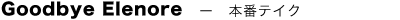 Goodbye Elenore - [ intro ] - ジェフのカウント共に本番テイクの開始です。"ジャ、ジャ〜、ジャ、ジャ〜" このイントロの出だしを聞くだけでいつも痺れてしましますね! |