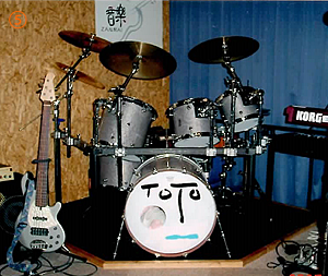 最近、特にTOTOトリビュート・バンドで叩く時は3タムが欲しいのと、折角ジェフと同じ仕様のドラムを持っているので、わがままを聞いてくれるハコであれば、できる限り自分のドラムをラック仕様で持ち込みをしてライヴを頑張ってますよ。でも、対バンがあったり、持ち込みをやんわり拒否されたり、セッティングの都合上、充分な場所が確保できない場合もありますので、そんな時は困ってます。最低限、スネア、ペダル、シンバルは必需品としても、贅沢を言えればTOTOは3タム!