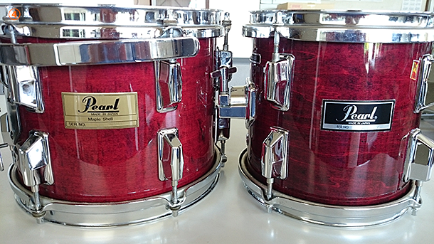 ■口PC-10も、マイナーチェンジしてる模様(笑) 多分、DR-50(1995年カタログから掲載)のウイングナットが写真右のPEARL文字が入ってないので、マイナーチェンジ後。左が初期PC-10だと思われます。