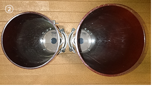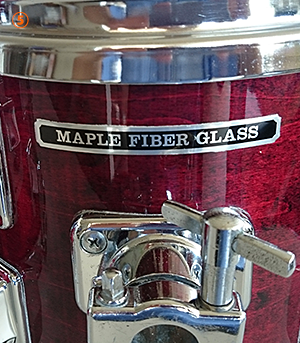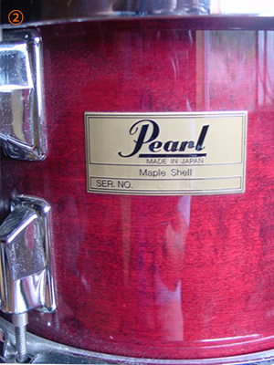 ■口(2) 下からの図。この赤茶色というか海老茶色が、ファイバーシェル! たまたま、最近、出入りするスタジオにファイバーシェル(PX)を置いているんですが、ファイバーグラスシェルとウッドシェルの中間くらいのサウンドで、さらに、独特のアタック感があり、かなりのお気に入りになってます。ですが、このファイバーシェル、衝撃に弱く欠けるんだとか、結構扱いが大変とかききました。エッジが欠けると大変!現行は、アルミシェルになってます。