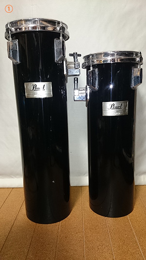 ■口(1)キャノンタム キャノンタムは、発売前からST氏が土管タム(土管をタムタムにしたもの)や"地球揺さぶり"のKY氏がヴァン・ヘイレン擬きでセットしていたことから、いずれ発売になる筈と密かに狙ってました!(爆) 横からの全景は、右がNo.800158(6"×18")、左がNo.800161(6"×21")。