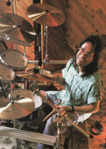 そんで、スティックがビック・ファース (笑) よっさん:おーっと、また、これは会話の弾む写真が!(笑) ジルジャン…使ってますねぇ、この写真は見たことありますが、やはり、シンバル系ノーマーク (苦笑) キングダム・レコーディングには、ブレイディーのキットは時間的に間に合ってませんよね。 Toshiさん:そうかもしれませんね。ギリギリまでパールでレコーディングしてて、届いたブレイディーの何かは使ったのかもしれませんし。レコーディングではジルジャンを多用していたと思います。 よっさん:トップはZって言ってましたよね。 Toshiさん:ハッツのですか? トップはKでボトムがZだと言っていたように記憶しています。言っていたというか、何かで読んだ記憶ですね。 余談ですが、 神保彰氏も過去に使っていた13" Kジルジャンですが、 彼は、マッチングさせる事もなく、フツウに発注して届いた物を使っていたそうです。 ジェフSさん:Kジルのハット使用してたのは、いつ頃なんですか? Toshiさん:セットから推測すると、'80年代の中頃だと思います。 |